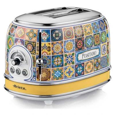 551/1 Positano 2 Slice Toaster, Vintage Italian Tile Design, Defrost & 6 Toasting Functions Ariete