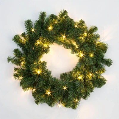 55cm Pre Lit Green Christmas Wreath Alaskan Pine for Fireplaces Home Wall Door Stair Artificial Xmas Tree Garden Yard Decorations with 30 Warm White LEDs