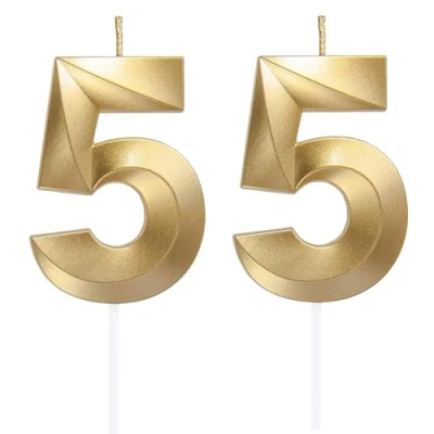 【Scope of delivery】You will receive 2 pieces numeral candles with number 5 and 5. The size of the birthday candle number is approx. 4.8cm long, total length is about 12.5cm, ideal size as cake decoration for most birthday and wedding cakes. Each numeric candle is sealed in a separate blister card package, providing good protection and reducing transport damage. 【Safe material】Our birthday candles are made of high-quality paraffin and PP plastic candle holder, safe, odorless and smokeless to use. These sparkler candles burn evenly and steadily, easy to insert into the cake and light. So you have a good experience with our number birthday candles. 【3D Craft】Our digital birthday candles have a 3D shape and gold shiny appearance, exquisite and beautiful to give you a feeling of starry sky. The glitter birthday candle set will make your birthday cake more attractive, make your party atmosphere unique, romantic and impressive. 【Widely Used】This number shaped candle is in gold colour and glittering, perfect cake decoration for birthdays of teenagers or adults, also ideal cake decoration for many occasions, such as birthdays, wedding, baby shower, anniversaries, retirement parties, family reunions, weddings, Hawaiian party, even Christmas and New Year, must-have items for party cakes, bringing an unforgettable and meaningful memories to yourself, your friends and family. 【Tips】Keep the birthday candles away from the fire in the shade. Please do not let kids touch when the candle burns. Do not leave the lit candles unattended, safety comes first.