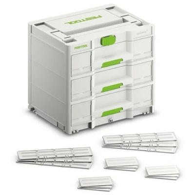 General description The Festool 577769 Sortainer SYS3-SORT/3 M 337 is a versatile storage solution designed for organizing small parts and hand tools. It features three drawers that can be customized with partitions or separately available plastic containers, ensuring that items such as nails, dowels, and screws are always within reach, promoting efficiency and organization at your workplace. Technical specifications Items included: 6 x Long Partition Items included: 9 x Short Partition Items included: Cover for Label Field Compatibility and accessories Compatible with the entire Festool Systainer system Compatible with plastic container set 50x50/50x100x68 (578056) in the drawer Compatible with plastic containers 204858, 204859, 204860, 204861 in the drawer Not compatible with plastic container set 60x60/120x71 3xFT (201124) Usage Ideal for storing and organizing small parts and hand tools Allows for individual drawer customization using partitions or containers Provides constant