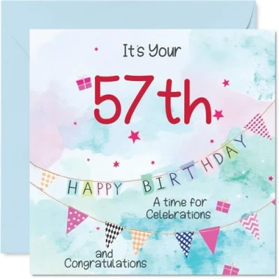 57th Birthday Cards for Men Party Bunting Happy Card 57 Year Old Man Uncle Cousin Brother Friend, 145mm Bday Greeting