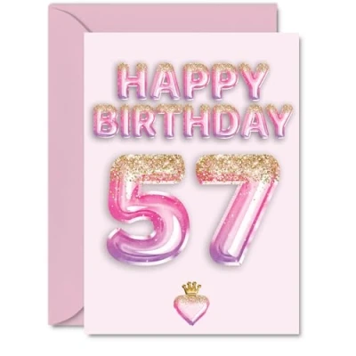57th Birthday Cards for Men Women Pink & Purple Glitter Balloons Happy Card 57 Year Old Man Woman Husband Wife Daughter Neighbour, A5 Bday Greeting