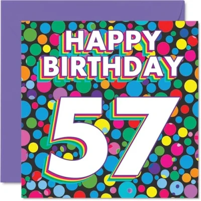 57th Birthday Cards for Women Men Funky Rainbow Dots Happy Card 57 Year Old Woman Man Nanny Dad Grandad Neighbour, 145mm Bday Greeting