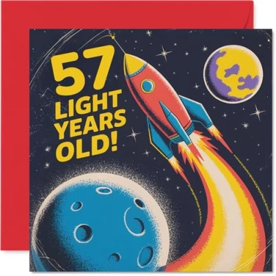 57th Birthday Cards for Women Men Light Years Old Happy Card 57 Year Woman Man Neighbour Husband Sister Grandad, 145mm Bday Greeting