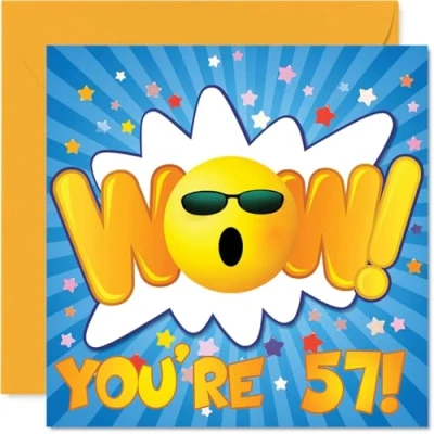 57th Birthday Cards for Women Men WOW Happy Card 57 Year Old Woman Man Husband Wife Daughter Neighbour, 145mm Bday Greeting