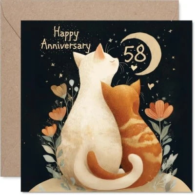 58th Anniversary Card for Women Men Cats in Love Happy 58 Year Partner Husband Companion Wife, 145mm Wedding Anniversaries Greeting Cards