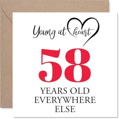 58th Birthday Cards for Women Men Young at Heart Happy Card 58 Year Old Woman Man Sister Colleague Daughter Grandma, 145mm Bday Greeting