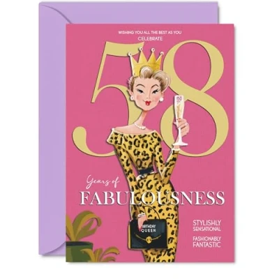 58th Birthday Cards for Women Years Of Fabulousness Happy Card 58 Year Old Woman Neighbour Daughter Colleague Sister, 5x7 Inch Bday Greeting