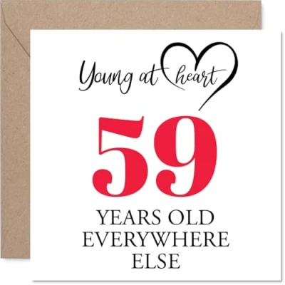 59th Birthday Cards for Men Women Young at Heart Happy Card 59 Year Old Man Woman Colleague Nanny Sister Daughter, 145mm Bday Greeting