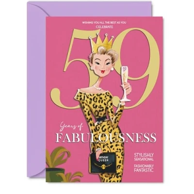 59th Birthday Cards for Women Years Of Fabulousness Happy Card 59 Year Old Woman Daughter Nanny Neighbour Colleague, 5x7 Inch Bday Greeting