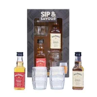 5cl Jack Daniel’s Tennessee Fire Whiskey (35% ABV) & Honey with 2 Mini Barrel Shot Glasses Gift Set