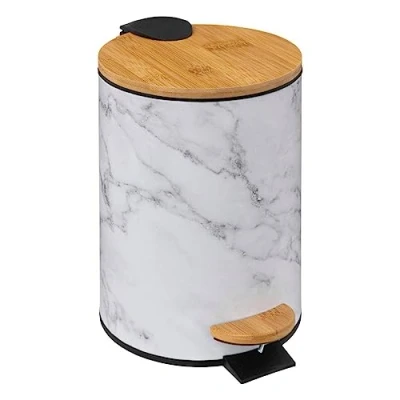 5five Waste Bin Soft Close Metal 3 L Lea White Marble Effect