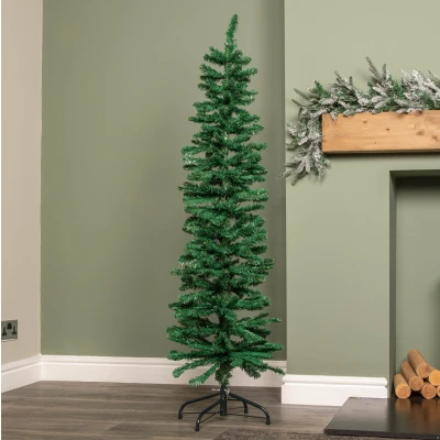 5ft (1.5m) Green Slim Pencil Christmas Tree with 236 Tips and Metal Stand Narrow Artificial for Small Spaces