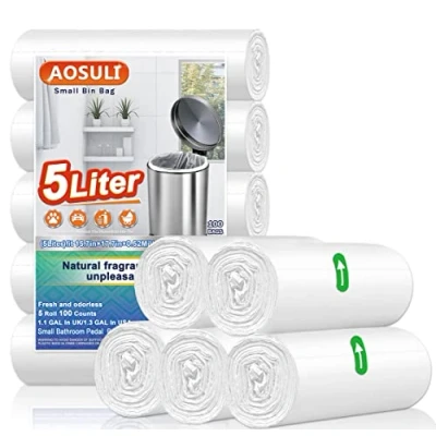 5Liter Bin Liners 100 Counts Small Bags AOSULI 3 5L White Clear Trash/Garbage for Office, Bathroom Pedal Bin,Bedroom Waste Bin,kitchen Food andToilet Wastebasket