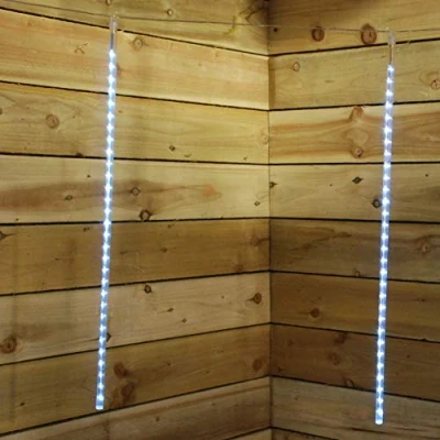 General description This magical light display will add festive charm to your Christmas outdoor decorations and sparkling light on cold winter nights. Each light is 70cm in height, creating a flowing snow effect. The warming welcome light is a beautiful addition to your home during dark evenings. Technical specifications Height of each light: 70 cm Number of bulbs: 150 Colour of light: White Cable length to product: 5 m Distance between each light: 50 cm Lead length from plug to first light: approx. 5 m Approx. 40 cm of lead between each light 30 White LEDs in each light tube Compatibility and accessories Suitable for indoor or outdoor use
