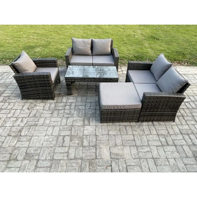 5pcs Rattan Outdoor Garden Furniture Sofa Set with Coffee Table Big Footstool Dark Grey Mixed Fimous