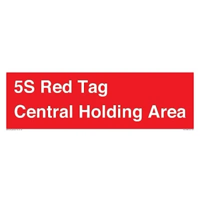 No Symbol This sign is made from vinyl / sticker Air Release vinyl makes it easy to stick to flat, clean surfaces without bubbles. Not for rough, plastic or dusty surfaces. 41 Sign Text: 5S Red Tag Central Holding Area