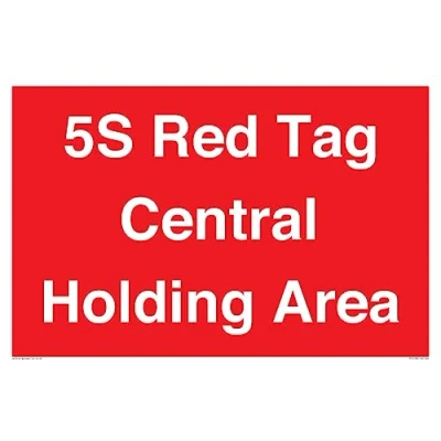 No Symbol This sign is made from plastic rigid 3mm 3mm plastic sign with foam core. Can be screwed, stuck with adhesive or hung with a hanging kit. Not suitable for cable ties. A2 landscape Sign Text: 5S Red Tag Central Holding Area