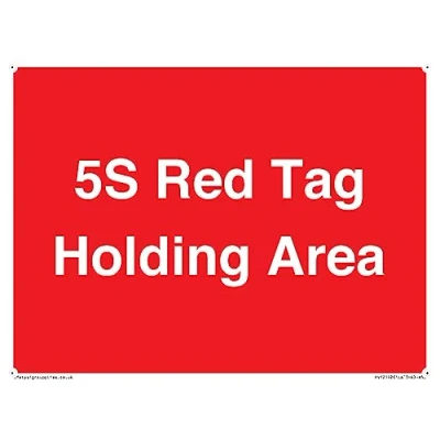 No Symbol This sign is made from aluminium composite 3mm Comes with3mm Corner Holes. A5 landscape Sign Text: 5S Red Tag Holding Area