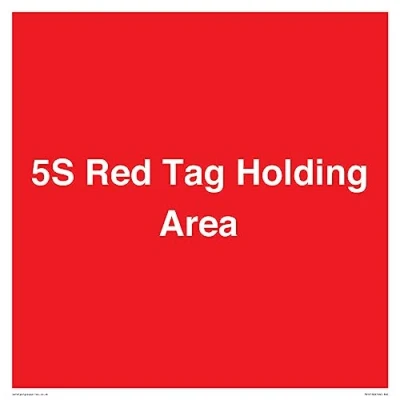 No Symbol This sign is made from vinyl high tack A stickier sticker. Uses a stronger adhesive to make it more suitable for plastic surfaces like Wheelie Bins or where the sticker might get rubbed. S40 square Sign Text: 5S Red Tag Holding Area