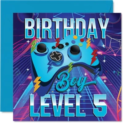 5th Birthday Cards for Boys Gamer Level Happy Card 5 Year Old Boy Great Nephew Brother Grandson Cousin, 145mm Bday Greeting