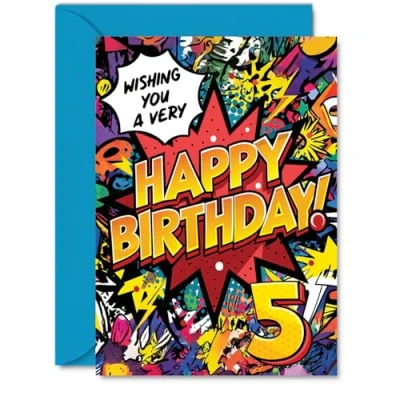 5th Birthday Cards for Boys Girls Comic Book Pow! Happy Card 5 Year Old Boy Girl Son Grandson Niece Brother, A5 Bday Greeting