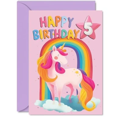5th Birthday Cards for Boys Girls Rainbow Unicorn Happy Card 5 Year Old Boy Girl Son Grandson Niece Brother, 5x7 Inch Bday Greeting