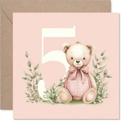 5th Birthday Cards for Girls Number Bears Happy Card 5 Year Old Girl Goddaughter Cousin Great Niece Granddaughter, 145mm Bday Greeting