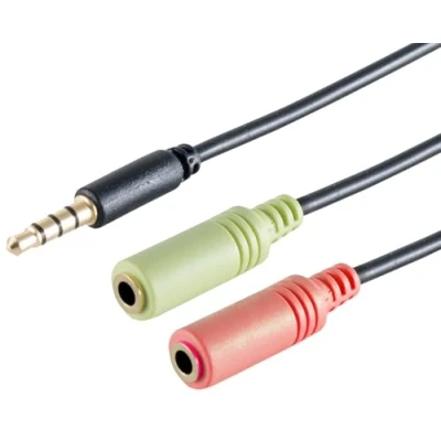 Adapter for headsets - 4-pin 3.5 mm male to 2 x 3-pin 3.5 mm jack sockets for audio and microphone VERSATILE APPLICATION - Perfect for Ultrabooks, Tablet PCs, Gamepads and Smartphones HIGH QUALITY MATERIALS - Gold-plated connectors and copper cores for best signal flow Robust design - Moulded connectors with kink protection for maximum durability Compact size - With 0.25 m length, ideal for mobile devices and easy use