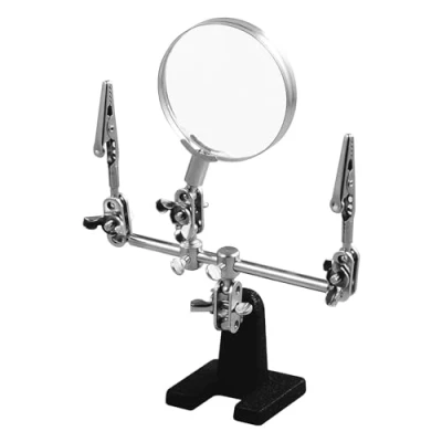 5x magnifying glass with heavy cast iron base and alligator clips. Soldering loupe, third hand for repair, assembly, soldering, electronics, etc.