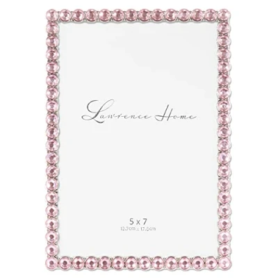 BEAUTIFUL DESIGN This charming and sweet frame has a continuous row of sparkling jewels set in elegant silver metal INCREDIBLE VALUE High quality heavy weight cast metal picture frame made with exceptional workmanship ELEGANT and LUSTROUS METAL FINISH Elevate your home décor with this sophisticated timeless design that will complement any room EASY TO OPEN AND HANG High quality easy open gray velvet backing comes with an easel for vertical or horizontal table top display and hangers for wall mounting PHOTO SIZE Holds 5 inch by 7 inch photo, vertical or horizontal