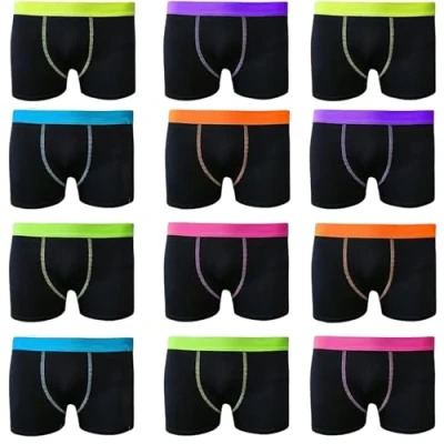 NEON STYLE, EVERYDAY COMFORT: Sleek black boxers with bold neon waistbands add a pop of color, making them fun and stylish for kids to wear daily. SOFT LYCRA FOR FLEXIBILITY: Made with a cotton-rich lycra blend that offers softness and stretch, ensuring a snug yet non-restrictive fit, ideal for active kids. BREATHABLE & MOISTURE-WICKING: The lightweight, breathable fabric promotes airflow, keeping kids cool, fresh, and comfortable all day—perfect for sports or school. DURABLE STITCHING FOR ACTIVE DAYS: Reinforced stitching ensures these boxers withstand rough play, offering reliability and long-lasting wear. TAG-FREE WAISTBAND FOR ALL-DAY COMFORT: No tags mean no itching—just smooth comfort for uninterrupted fun and focus throughout the day.