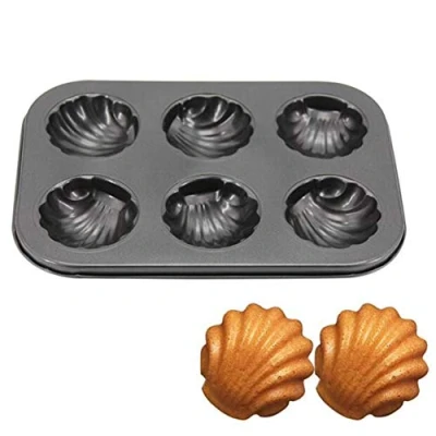 6 Cavity Shell Nonstick Carbon Steel Muffin Pan,DIY Fondant Cake Pan Baking Non Stick Tray Cupcake Cookie Maker Mould Biscuit Dessert Madeleines Mold Bakeware
