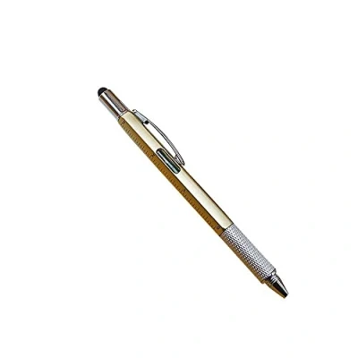 6 In 1 Multi Function Tool Ballpoint Pen,Super Tech Pen With Pen/Ruler/Spirit Level/Touch Screen Stylus Screwdriver,Tech For Men's Gift YellowDeft Processed