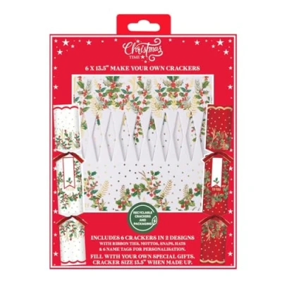 6 Make Your Own Christmas Crackers Red And White Floral Personalised Xmas Table Decoration Craft