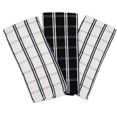 6 or 12 Pack Big Check Tea Towel Terry Cotton Absorbent, Black,