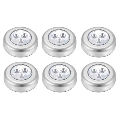 6 Pack LED Battery Powered Wireless Night Light Tap Touch Lamp, Self Adhesive Push for Closets, Cabinets, Counters, or Utility Rooms, Cordless Puck Light, Batteries Not Included (6 Pack)