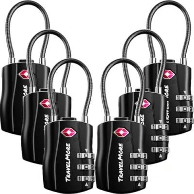 【Most Durable TSA Lock on the Market】These travel locks are designed from the ground up to be the strongest and most reliable luggage locks around. Our special high-strength zinc alloy lock bodies, reinforced and sheathed flexible steel cables, hardened steel cable lock ends, and patented internal mechanisms can take so much force that we back our product with a lifetime warranty. 【TSA Approved】All TravelMore luggage locks are TSA approved, allowing security officers to easily open the lock and inspect your suitcase without causing any damage. Afterward, they securely relock it, ensuring your luggage stays protected. 【Multiple Uses with Flexible Cable Design】The flexible steel cable is compatible with all types of latches, lock holes, or zippers, making it ideal for various uses, including backpacks, suitcases, carry-on bags, gym lockers, duffel bags, sports bags, briefcases, golf bags, or Pelican cases. 【Easy to Set 3-Digit Combination】Our easy-to-use and resettable 3-digit combination lock can be set to any combination of your choosing for added security. Clear instructions are included with every travel padlock. Never worry about losing keys again. 【Lifetime Warranty】We are committed to the quality of our luggage locks, offering a lifetime warranty with no questions asked. If you are not 100% satisfied with our product, simply let us know and we will do everything we can to make it right! Our 24/7 customer support is available in your preferred language., Weight: 0.13007273458 Pounds, Manufacturer: TravelMore