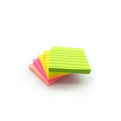6 Pads Lined Bright Colour Sticky Post Notes Removable Adhesive 76x76mm 100 Sheets Per Pad Orange, Pink, Green, Yellow