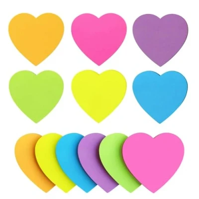 Cute Heart Design – Each sticky note features an adorable heart shape in six bright and cheerful colors, adding a fun and decorative touch to any notebook, planner, or workspace. Perfect Size for Notes – Measuring 70 x 70 mm, these sticky pads provide ample space for reminders, messages, or quick notes, making them practical for school, office, or home use. Removable & Reusable Adhesive – The sticky notes easily adhere to smooth surfaces and can be repositioned without leaving residue, allowing flexible use on books, desks, or walls. Versatile for Everyday Use – Ideal for jotting down reminders, marking pages, labeling items, or leaving thoughtful messages, suitable for students, office workers, or home organization. Portable & Gift-Friendly – Lightweight and compact, these sticky pads are easy to carry in backpacks or planners, and their cute design makes them a thoughtful gift for girls, friends, or stationery lovers.