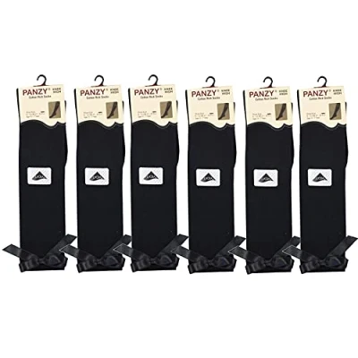 6 pairs Girls Bow Knee High School Plain Long Length Cotton Stretch With all size & colour (Set of pairs) (Black, 4 7 years)