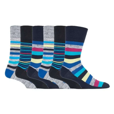 6 Pairs mens gentle grip no elastic socks 11 uk, 39 45 eur Assorted colours (MGG563)