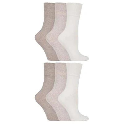 6 Pairs Plain Ladies Gentle Grip Honeycomb Top Socks Colours (GG001)