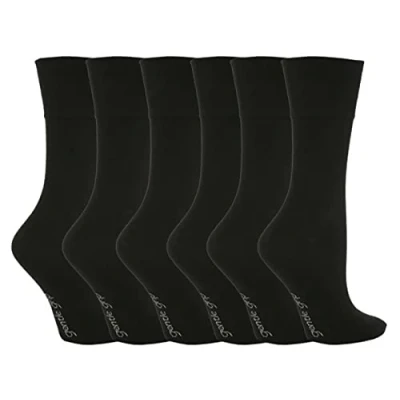 6 Pairs Women's Sockshop Cotton Gentle grip socks 4 8 uk, 37 42 eu BLACK (GG67)