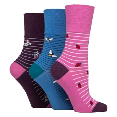6 Pairs Womens Sockshop Cotton Socks Gentle Grip 4 8 UK (UK, Numeric, 4, 8, Regular, Beautiful Bugs)