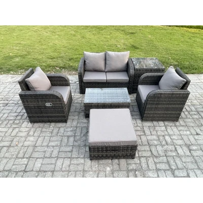 6 pc Outdoor pe Rattan Garden Furniture Set Wicker Love Sofa Coffee Table 2 Armchair Big Footstool Side Dark Grey Mixed Fimous