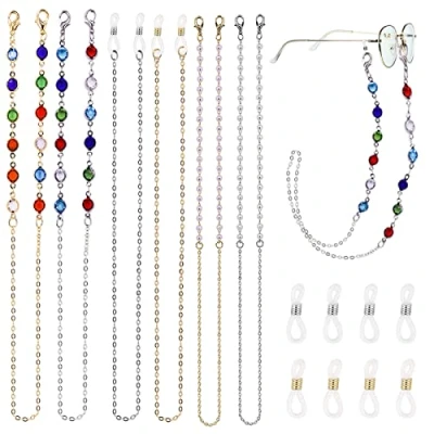 PACKAGE:The package includes 6 pieces glasses necklace chains in 6 different patterns with 6 pairs anti-skid ear hooks and anti-skid buckles, easy to attach to your glasses. MATERIAL: Lanyard eyewear straps are made of premium jewelry meterial, sturdy with elegant design, fashionable and stylish,lightweight for longtime wear. ITEM SIZE: Glasses necklace chains are approx. 37.5 cm/ 14.7 inches in length, long enough for you to wear the eyeglasses on your neck, can protect glasses from lenses scratches. DESIGN: Crystals sunglasses chains both ends have adjustable holder loops with metal coil, adjust the metal rings to control the tightness of the silicone loops according to your glasses. APPLICATION: Spectacle eyeglass chains are suitable for sunglasses,myopia,reading glasses,spectacles,and other types of glasses,nice for both outdoor ans indoor activities.