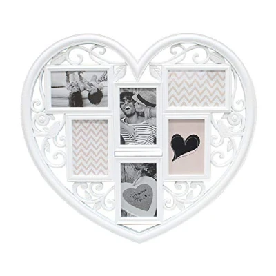 6 Photo Large Wedding Frame 3D Hanging Heart Shaped Multi Collage Picture Love (White)
