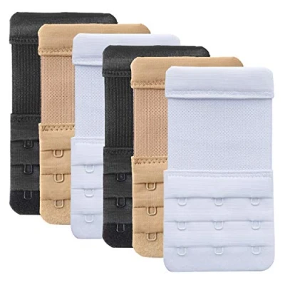 Bra extenders can add more extra breathing room to your bras during pregnancy, breastfeeding, weight gaining, bra shrinkage and more, also fit for new bras which is tight for you 3 Row x 3 Hook and Eye Strap Stretchy Extension, adjustable length, perfect extension for 3 hook bras. Approx. 0.75inch (19mm) spacing between hook centers. ****SIZE**: 3.7inch(Length) x 2.2inch(width) / 94mm(Length) x 56mm (width) Package contents: 6 pieces of 3 hook bra extenders