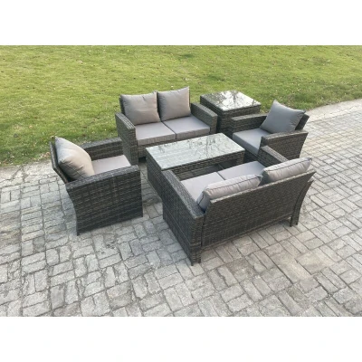 6 Seater Dark Grey Mixed High Back Rattan Sofa Set Coffee Table Garden Furniture Outdoor Patio With Love Arm Chairs Side Fimous